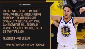 除了趣事,汤普森还谈到了自己的队友斯蒂芬·库里。他说:“库里这个人,你根本不用担心他会放弃比赛。每次比赛,他都会全力以赴,直到最后一刻。而且,他的三分球简直太神奇了,有时候我都怀疑他是不是在作弊。”